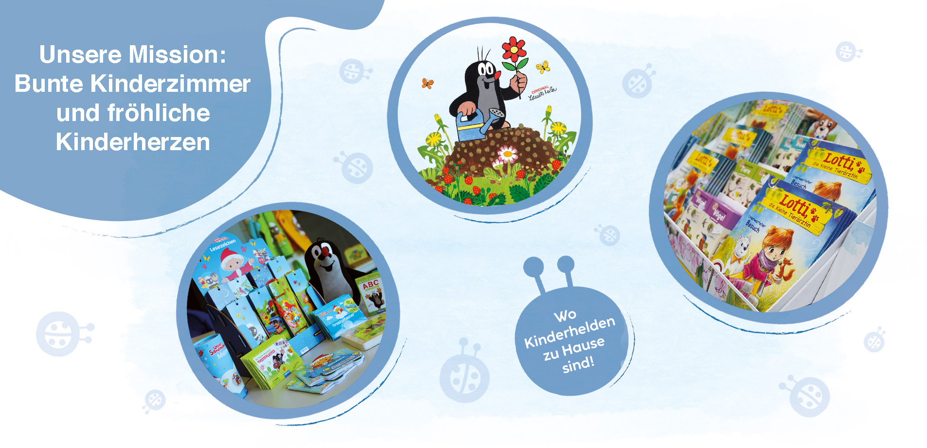 Unsere Kinderbücher, kunterbunt, fantastisch illustriert, voller spannender und lehrreicher Geschichten, nehmen Klein und Groß mit auf eine Abenteuerreise ins Land der Kinderträume. Zum Vorlesen, Mitmachen und Lernen haben wir ein breitgefächertes Verlagsprogramm entwickelt. Kinder lernen ihre ersten Lieder mit unseren Soundbüchern. In unseren Uhrenbüchern begleiten sie unsere Helden bei ihren alltäglichen Aufgaben und lernen dabei spielend leicht die Uhrzeit. Kleine Künstler, die ihrer Kreativität freien Lauf lassen wollen, werden unter unseren zahlreichen Malbüchern und Bastelblöcken garantiert fündig. Doch glauben Sie nicht, dass das schon alles war.